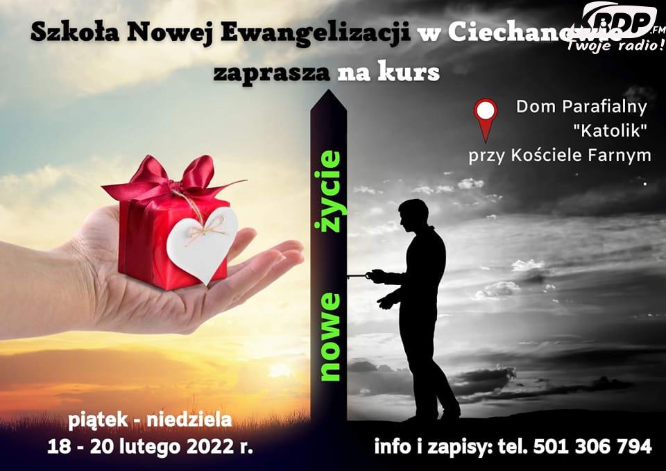 Kurs rozpocznie się w domu parafialnym “Katolik” w piątek 18. marca o 16.30 a zakończy w niedzielę. Szczegółowe informacje na fejsbukowym fanpejdżu Szkoły Nowej Ewangelizacji w Ciechanowie.
