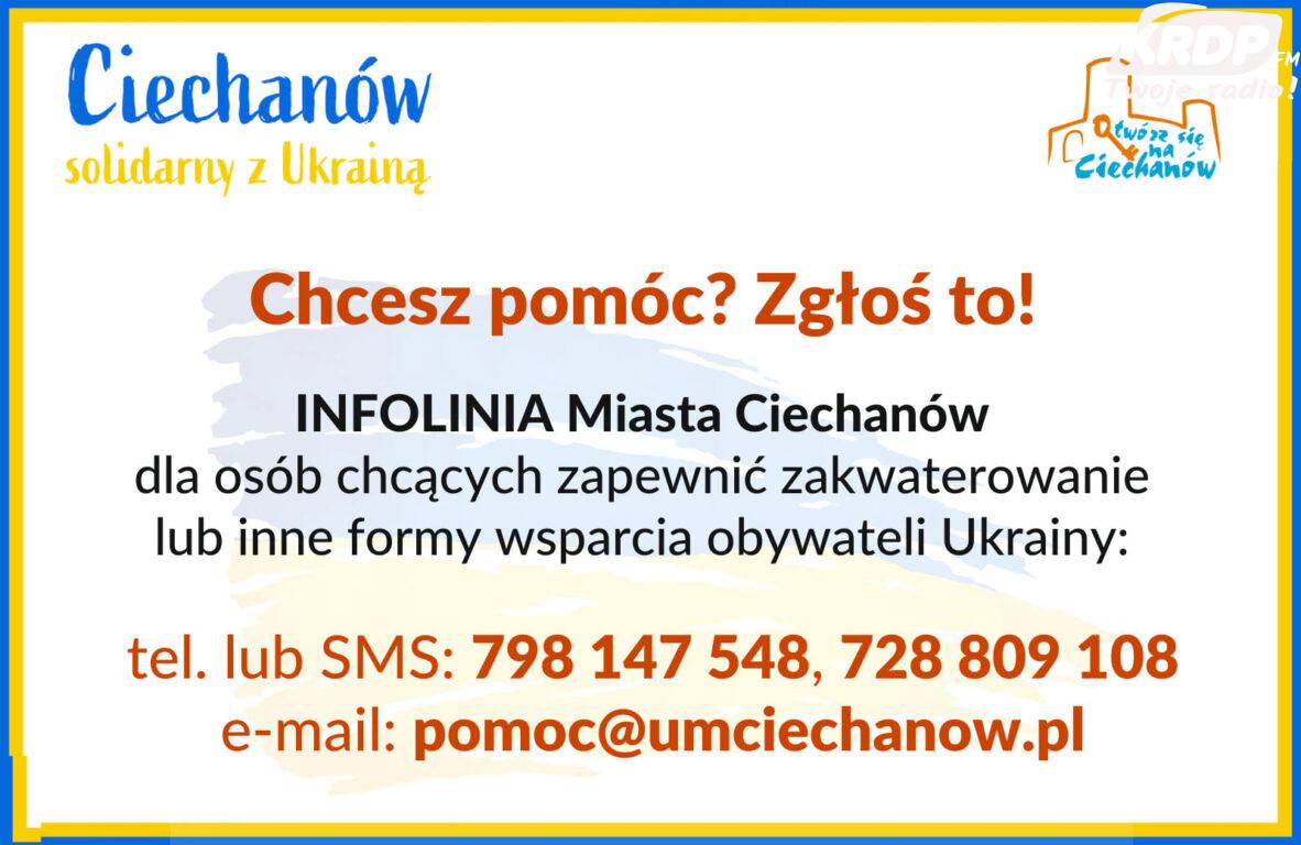 Samorząd miasta prosi o kontakt osoby, które już przyjechały do Ciechanowa na własną rękę. Wtedy wdrożona zostanie forma pomocy właściwa dla tych osób.