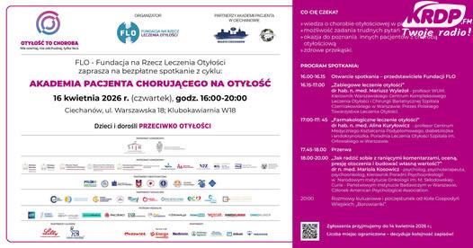 Fundacja na Rzecz Leczenia Otyłości FLO zaprasza 16 kwietnia o godz. 16.00 do Klubokawiarni W18 przy ulicy Warszawskiej 18 w Ciechanowie na spotkanie z cyklu „AKADEMIA PACJENTA CHORUJĄCEGO NA OTYŁOŚĆ”. O szczegółach spotkania mówi Katarzyna Kunert z fundacji.