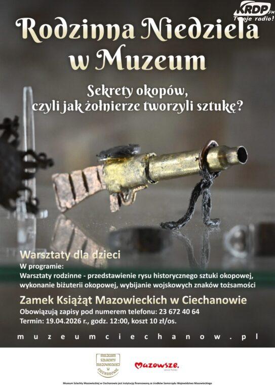Muzeum Szlachty Mazowieckiej w Ciechanowie zaprasza 19 kwietnia o godz. 12.00 na Rodzinną Niedzielę w Muzeum “Sekrety okopów, czyli jak żołneirze tworzyli sztukę?”. O szczegółach wydarzenia mówi Nina Matczak, kierownik działu promocji i komunikacji w muzeum. Zapraszamy w imieniu organizatorów. fot. Plakat organizatora