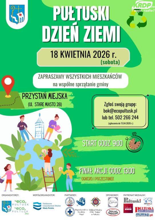 Samorząd Gminy Pułtusk wraz z ECO Pułtusk zapraszają 18 kwietnia na Pułtuski Dzień Ziemi na Przystań Miejską przy ulicy Stare Miasto 28. Mieszkańcy będą mogli wspólnie uczcić ten dzień uczestnicząc w akcji sprzątania gminy. Celem wydarzenia jest nie tylko poprawa estetyki okolicy, ale przede wszystkim budowanie świadomości ekologicznej i integracja lokalnej społeczności. Zbiórka rozpocznie się […]