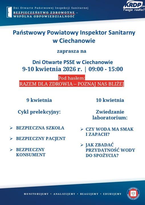 Państwowy Powiatowy Inspektor Sanitarny w Ciechanowie zaprasza na Dni Otwarte Powiatowej Stacji Sanitarno-Epidemiologicznej w Ciechanowie w dniach 9-10 kwietnia w godz. 9.00-15.00. Jaki jest cel Dni otwartych? Mówi dr Dariusz Drzewiecki, Państwowy Powiatowy Inspektor Sanitarny w Ciechanowie.