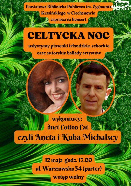 12 maja 2023 r. o godz. 17.00 w Powiatowej Bibliotece Publicznej im. Zygmunta Krasińskiego przy ulicy Warszawskiej 34 w Ciechanowie odbędzie się koncert pt. “Celtycka Noc”. Na wydarzenie zaprasza Lech Zduńczyk dyrektor biblioteki.