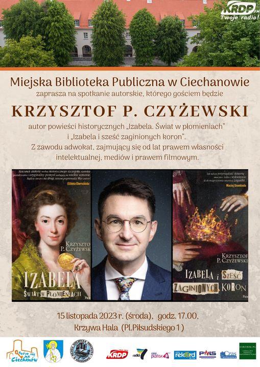 Miejska Biblioteka publiczna w Ciechanowie zaprasza na spotkanie autorskie, którego gościem będzie Krzysztof P. Czyżewski autor powieści historycznych “Izabela. Świat w płomieniach” i “Izabela i sześć zaginionych koron”. Bohater spotkania z zawodu jest adwokatem zajmującym się od lat prawem własności intelektualnej, mediów i prawem filmowym. Spotkanie odbędzie się 15 listopada 2023 r. (środa) o godz. 17.00 w Krzywej Hali przy Placu Piłsudskiego 1. Zapraszamy w imieniu organizatora. Wstęp na wydarzenie jest wolny.