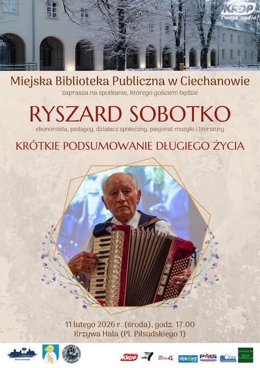 Miejska Biblioteka Publiczna w Ciechanowie zaprasza 11 lutego o godz. 17.00 do Krzywej Hali przy Placu Piłsudskiego 1 na spotkanie, którego gościem będzie Ryszard Sobotko, ekonomista, pedagog, działacz społeczny, pasjonat muzyki i literatury. Na wydarzenie zaprasza Alicja Wodzyńska, dyrektor biblioteki.