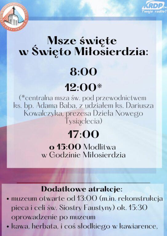 Dodatkowe msze tego dnia będą sprawowane o godzinach 8:00, 15:00 – w Godzinie Miłosierdzia – i 17:00.