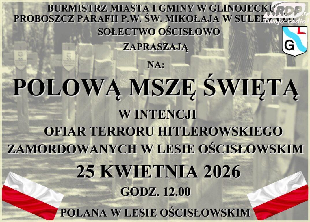 Burmistrz Miasta i Gminy Glinojeck Łukasz Kapczyński zaprasza mieszkańców i rodziny pomordowanych na mszę św. polową, która odprawiona zostanie 25 kwietnia o godz. 12.00 na polanie w Lesie Ościsłowskim.